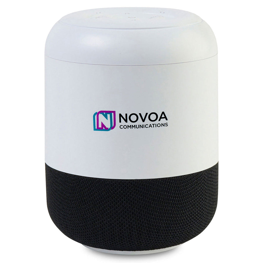 Add your corporate logo to the Gemline White Everly Bluetooth Speaker to use as an employee anniversary gift that everyone can enjoy. Easily stream music from your tablet, phone, or any Bluetooth enabled device using the rechargeable speaker that rests easily on your desk or table. Integrated buttons allow you to skip tracks, adjust the volume, or stop and take calls using the built-in microphone. An LED indicator light lets you know you are paired and battery levels as needed. Set up and demonstrate this speaker at trade shows to draw attention to your booth and overall company in a fun and entertaining way. Place an order right away.