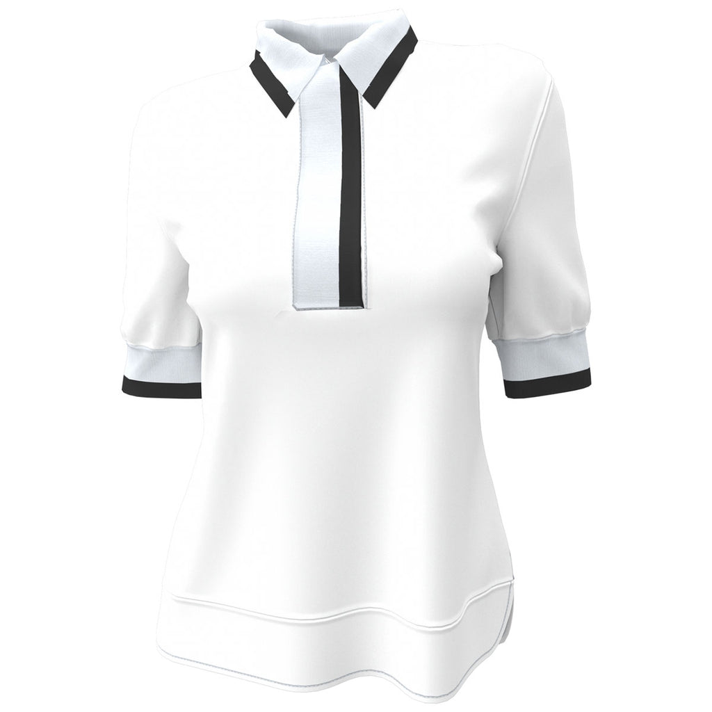 Upgrade your look with a custom A. PUTNAM Women's Bright White Black Short Sleeve Polo. The modern take on a short-sleeve polo offers all the details that matter to give it an upgrades look. Perfect for the office, an elegant dinner, or an afternoon at the club, this polo will turn heads. Pair with slacks a skirt, or anything else you choose. Order today.