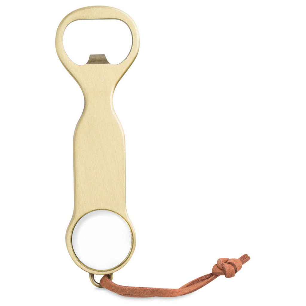 The Ahead Antique Brass Bottle Opener with a corporate logo is a fun and classy way to enjoy your favorite bottled drink. The rich antique brass finish with a suede cord and affixed ball marker is ideal for member guest giveaways or tournament swag. Keep this bottle opener in your pocket, golf bag, or on the cart to use as needed.