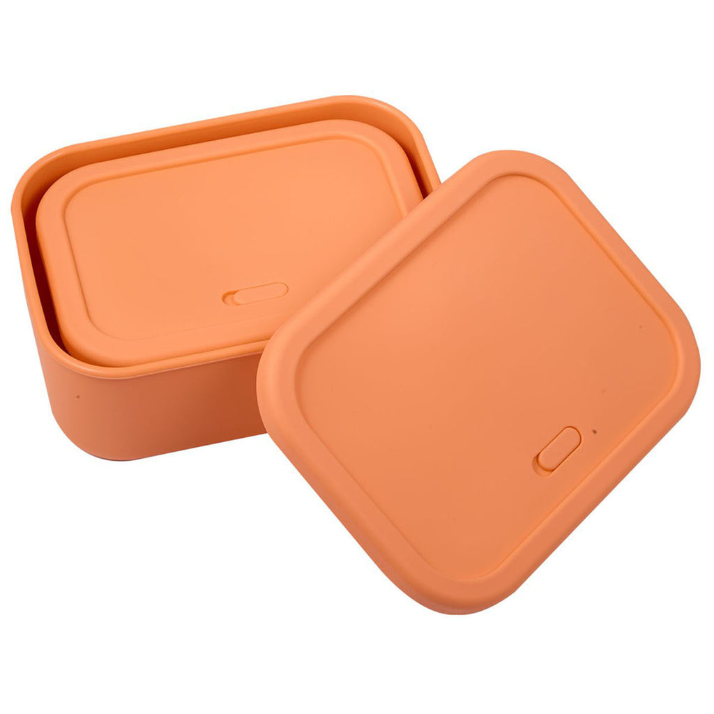 Be versatile with the custom Leed's Melon Silicone Food Storage Box with Air Valve Set - 24 oz and 44 oz. This dual container set is made of high-grade food-safe silicone, making it safe and durable for repeated use. The built-in air valve releases air to maintain food freshness. Perfect for lunches, leftovers, and traveling with snacks.The minimum order for this product is 36 pieces.