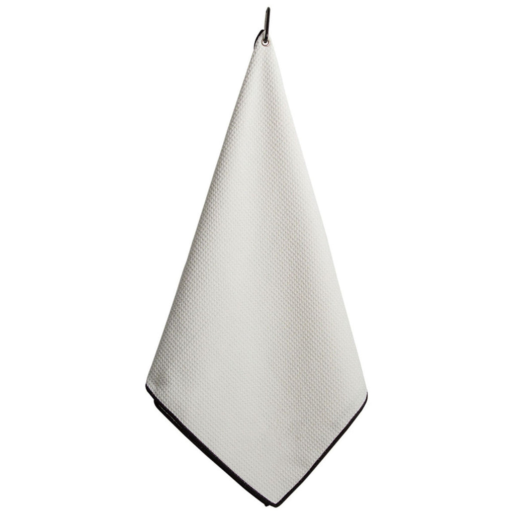 The Ahead White/Black Microfiber Golf Towel with a corporate logo keeps your hands, clubs, and balls clean as you continue to play for hours on end. The multi-functional towel has quick absorption with a waffle pattern and attached carabiner, so it can hook onto your bag with ease. Ideal for a pro shop or as a gift for those who love the game.