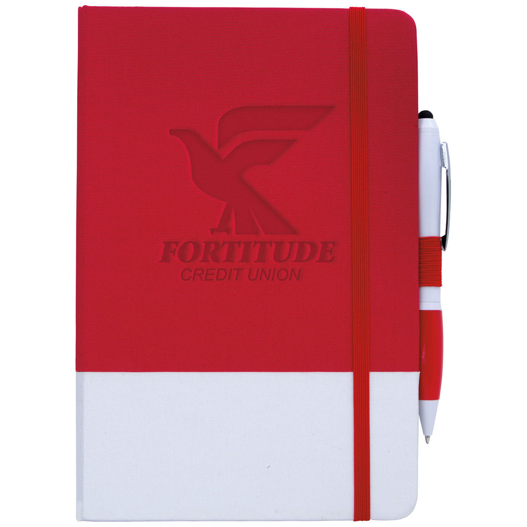 Be ready to take down notes with a custom Good Value Red PrevaGuard Notebook with Ion Stylus Pen. The color and white block on PrevaGuard notebook is clear so your logo takes center stage. Included is a PrevaGuard Ion stylus pen that contains an antimicrobial additive that will last the life of the plastic to resist stains, bacteria, and viruses or germs. Add a corporate logo to give these as tradeshow giveaways or add to a new employee welcome basket as a thank you for joining the team. Though this is a simple item, it is one that can be used daily. The stylus pen rests comfortably in an elastic band to make sure it is always at hand. Place your order today.