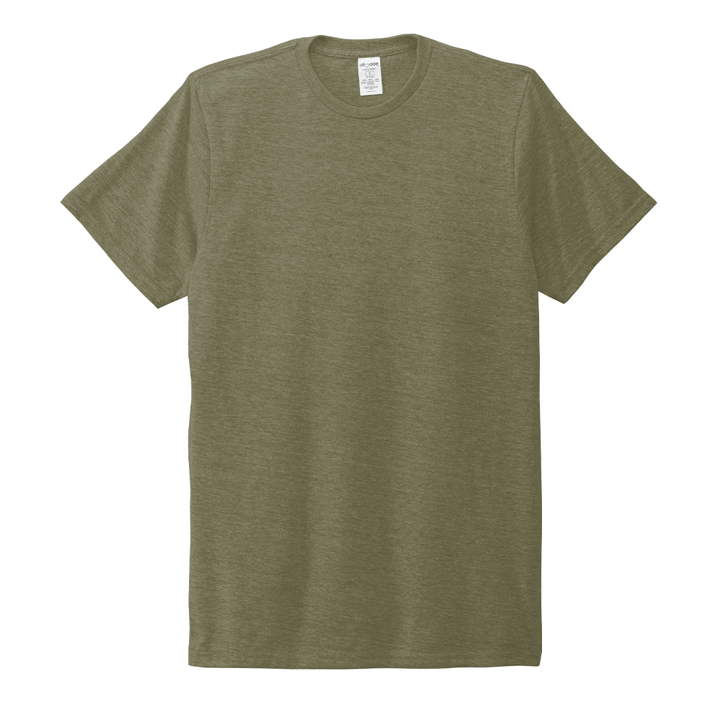 Screen print will pop on the Allmade Unisex Olive You Green Tri-Blend Tee with your choice of design and location. This sustainable clothing is a must have for most wardrobes because it is both eco-friendly and comfortable. Easy to wear alone or layer as needed, this recycled apparel is made from sustainable materials that are the equivalent of up to six recycled plastic water bottles. With a rib knit collar, side seams, and tear away label, this tee can go from a morning run to a day spent with families and home again with ease. Made for durability, this tee will make your custom logo stand out whether used as a custom gift or employee apparel.
