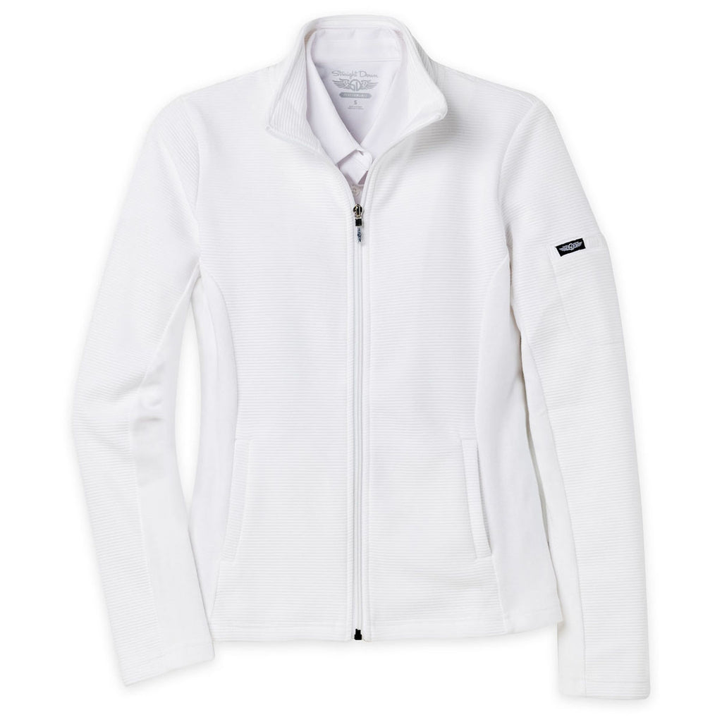 Elevate custom outerwear collections with the Straight Down Women's White Swing Jacket. This lightweight piece blends function with fashion, offering wind protection in a modern A-line design. The standing collar and zip front give it polish, while the stretch fabric adds comfort, which is ideal for branding or upscale activewear programs.Highlights