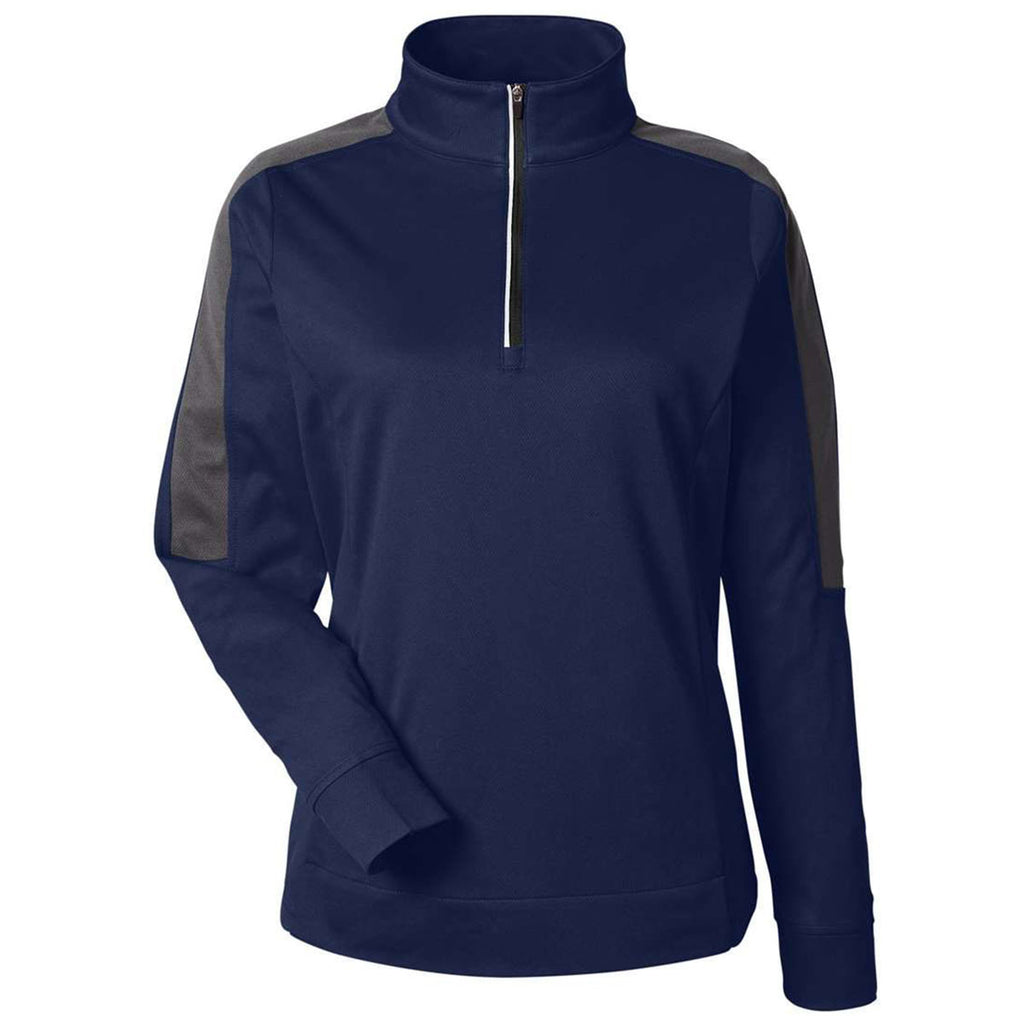 Core 365 Women's Classic Navy Heather/Carbon Market Snag Protect Mesh Colorblock Quarter-Zip Pullover