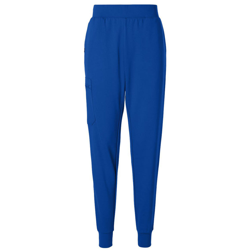 Jaanuu Women's Royal Blue Rubi Ultrasoft Scrub Joggers with custom embroidery make a great gift or corporate uniform for those in the healthcare or health and wellness industries. These slim fitting joggers have four-way stretch, moisture management properties, and several pockets for convenience as you go about your day.