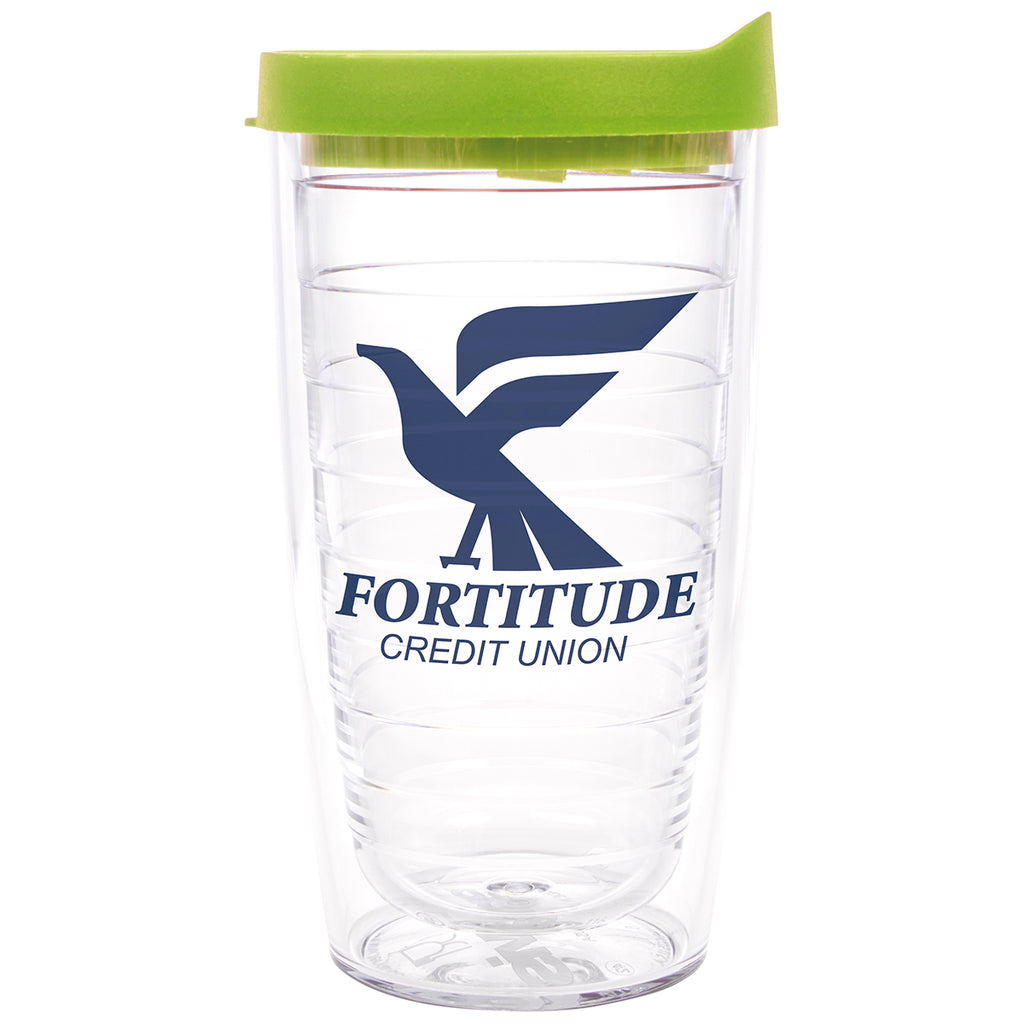 Tervis Clear Tumbler with Lime Green Lid Classic Tumbler 16 oz. - Printed with a corporate logo is a fun and functional way to draw attention to your brand. Whether you are selling these tumblers, giving them away with purchase, or using them as an incentive for a recruiting event, they will be a fan favorite. Great for the morning commute or just to enjoy your favorite drink.The minimum order for this product is 24 pieces.