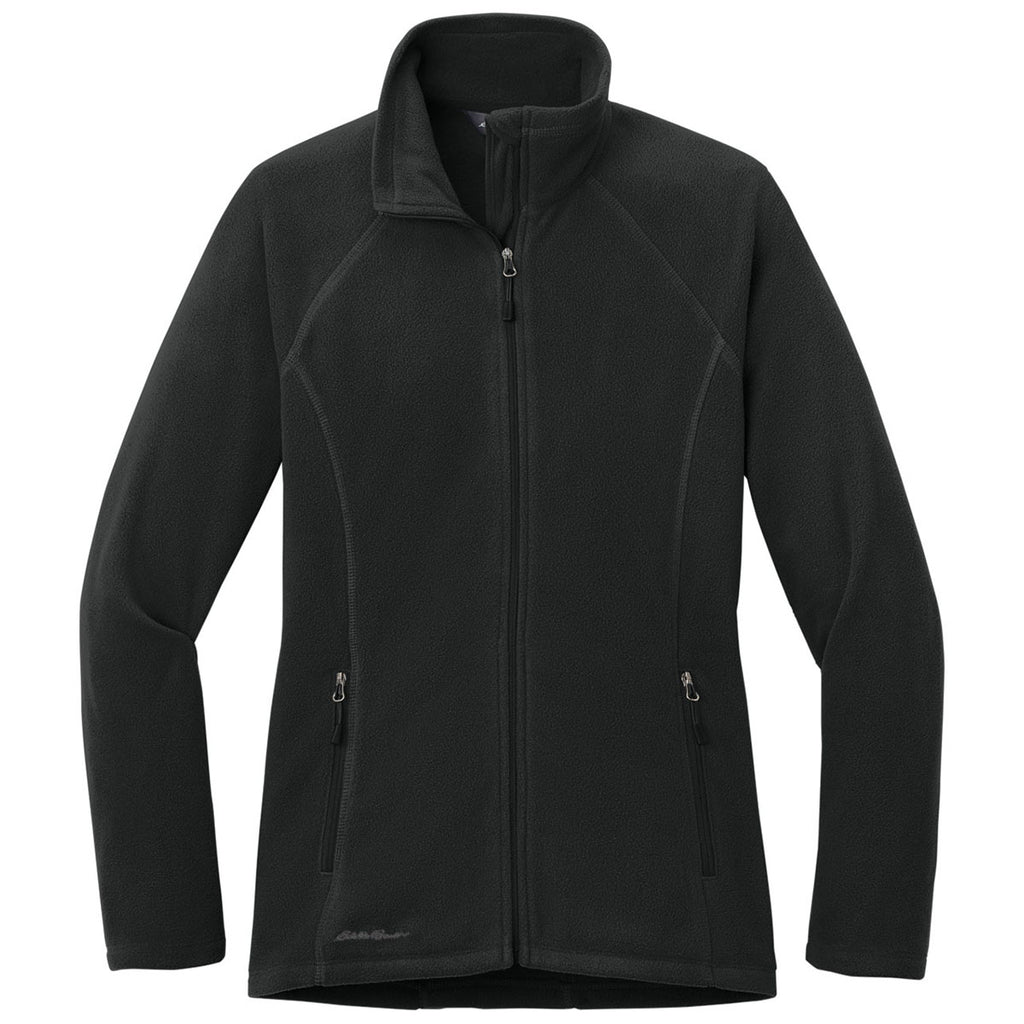 When is a microfleece more than a microfleece? When it rises above expectations. Sure, you'd expect that the Eddie Bauer Women's Black Full-Zip Microfleece Jacket would be cozy enough for a snug fit. But did you expect princess seams and an open hem, offering breathability as well as comfort? And you might expect function. But reverse coil zippers, front zippered pockets, and a 100% polyester fabric ensure not only that your valuables are protected, but that you are protected from the elements as well. All in all, this is the perfect microfleece for any number of situations in which you need to shield yourself from the cold, the rain, the'well, just about anything mother nature wants to throw at you. Add your own corporate logo to this microfleece and you'll have a high-quality branded item all your own.