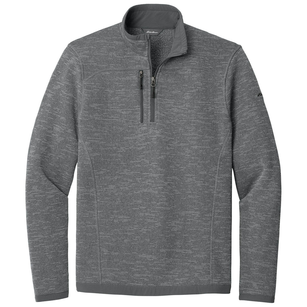 Create a unique custom embroidery look with the Eddie Bauer Men's Dark Grey Heather Sweater Fleece Quarter Zip made of beautiful refined sweater fleece material. Perfect for any corporate event in which the attire is dressy casual, this Quarter zip offers a cadet collar, exposed coil zippers, and open cuffs and hem for a refined, yet comfortable look. Add a corporate embroidery to use these as additional pieces to company uniforms or provide end of the year gifts that will be cherished for years to come. The perfect blend of polyester and spandex trim mean these Quarter zips are easy to wear as part of a layered look.