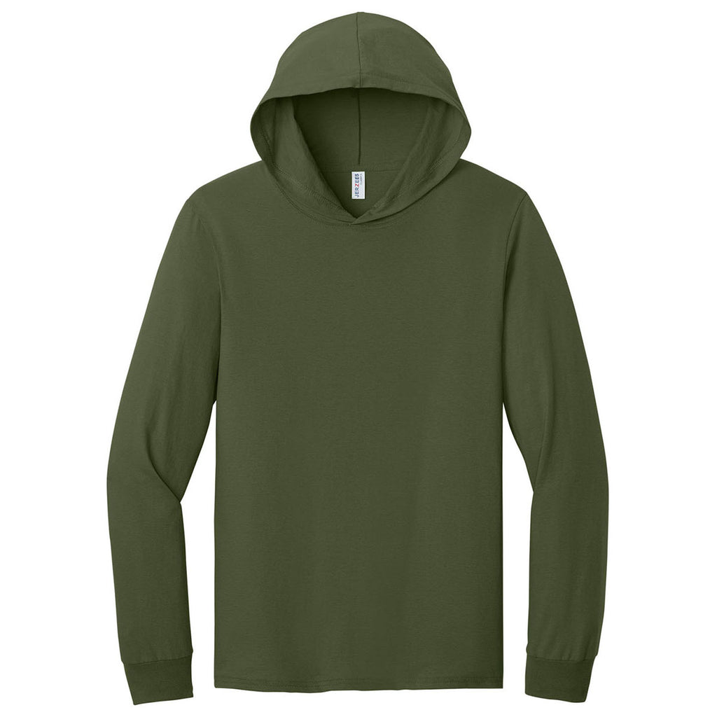 Jerzees Classics Unisex Military Green Cotton Long Sleeve Hooded T-Shirt