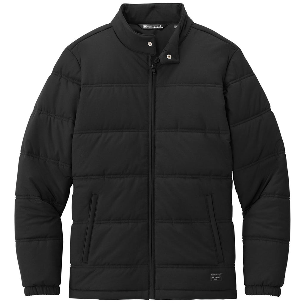 TravisMathew Men's Black Cold Bay Jacket combines performance and custom corporate style. Its quilted front, lightweight insulation, and stretch fabric sleeves deliver warmth without bulk, making it a versatile outer layer. Ideal for office-to-outdoor wear, this jacket highlights embroidered logos with a clean, upscale finish. A professional yet functional piece, it's an excellent choice for branding that lasts.This product cannot ship outside of the United States.