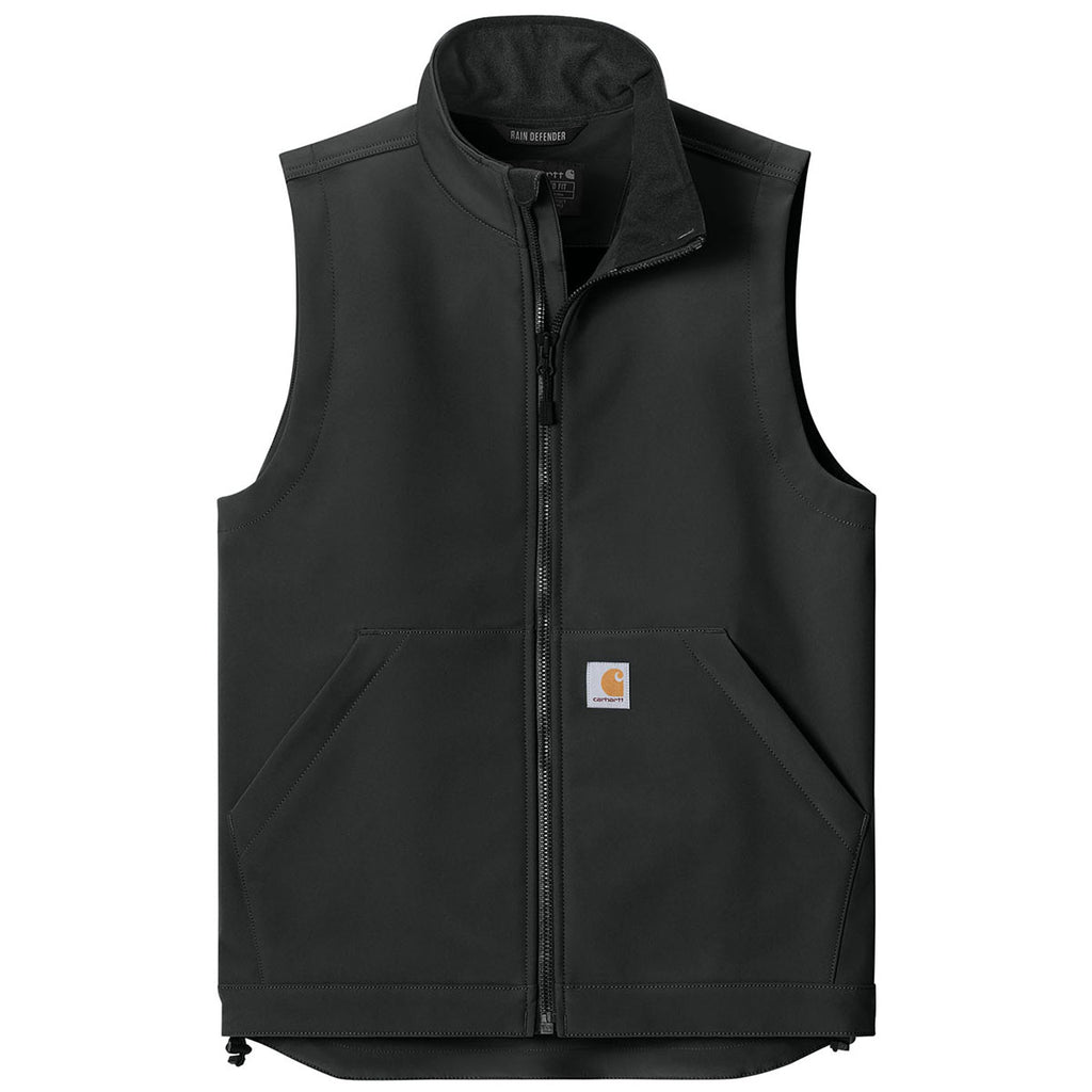 The Carhartt Men's Black Rain Defender Soft Shell Vest offers a versatile layer for work or casual wear. Its weather-resistant fabric ensures comfort outdoors, while the sleeveless design allows freedom of movement. With corporate customization, it becomes a practical branded piece, ideal for layering during transitional seasons or as part of a team uniform.This product can only ship within the United States and Canada.