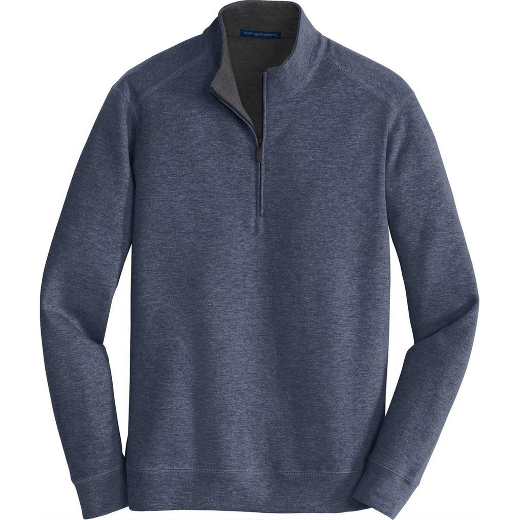 Port Authority Men's Estate Blue Heather/Charcoal Heather Interlock 1/4-Zip
