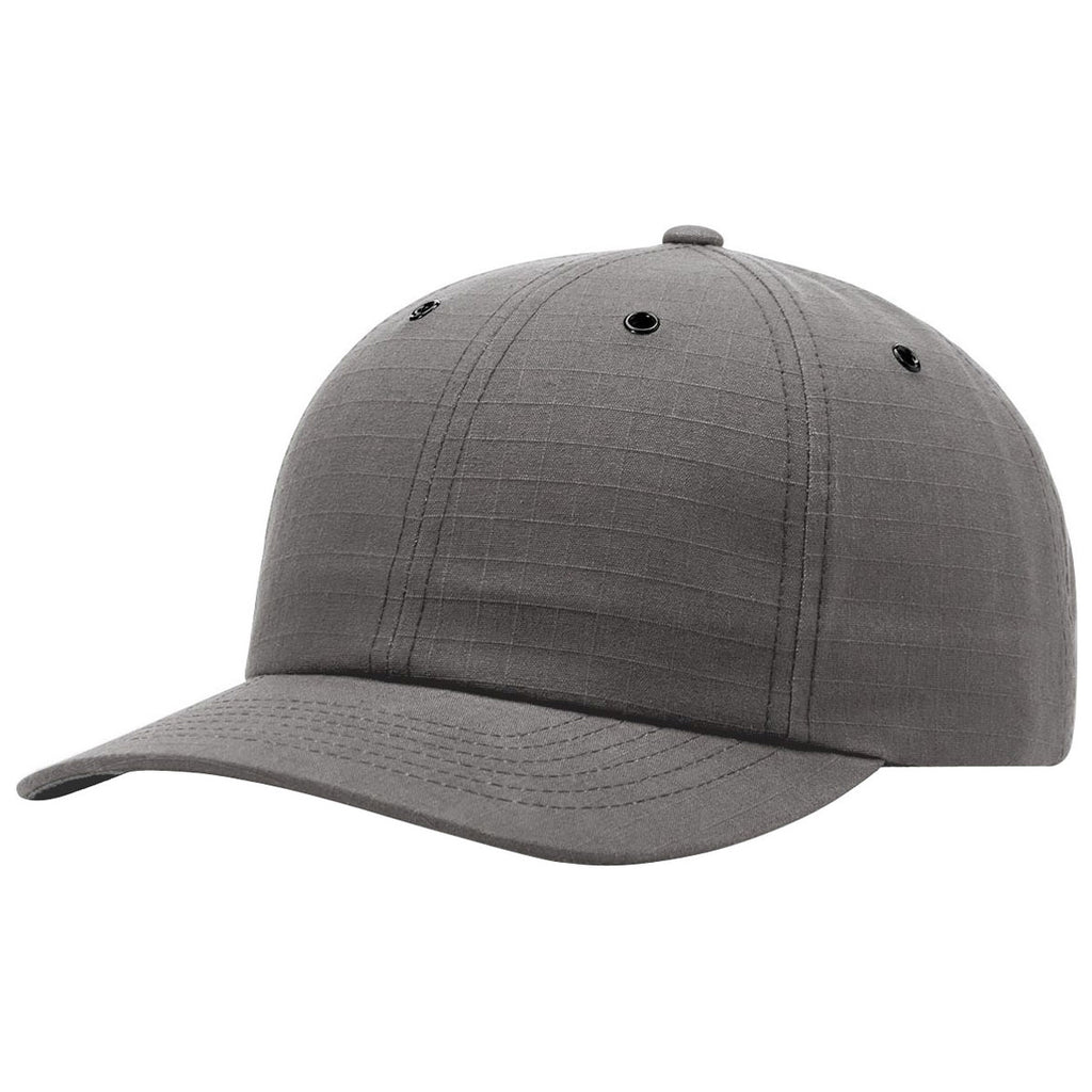 Laid-back style and function converge in the Richardson Charcoal Koosah Hat. Have it embroidered with a logo or company name for perfect custom touch! It features ripstop fabrication accented by metal grommet eyelets for an industrial-inspired touch. Other highlights include adjustable strapback and cotton sweatband. It makes a great branded headwear promo tool to target a broad spectrum of audiences to take your logo or custom message to schools, marketplaces, sidewalks, gyms and more. Add your custom monogram or logo to this cap for a corporate promo tool that will stand out.The minimum order for this product is 48 pieces.