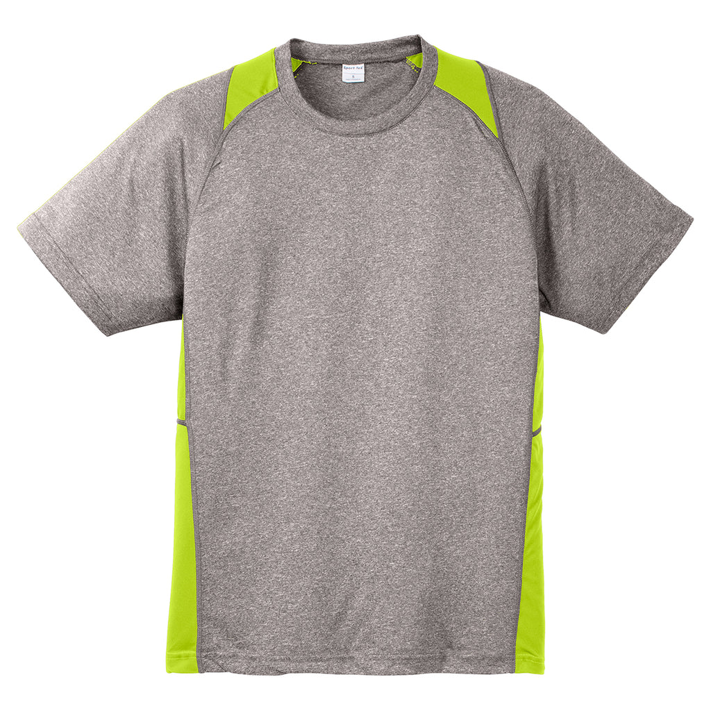 Sport-Tek Men's Vintage Heather/Lime Shock Heather Colorblock Contender Tee