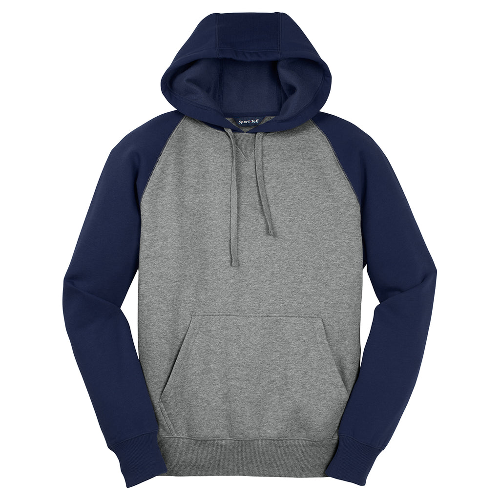 When the weather gets tough, so must you. That's the idea behind this Sport-Tek Men's True Navy/ Vintage Heather Raglan Colorblock Pullover Hooded Sweatshirt. Add your own custom embroidery to make this a piece of corporate apparel that anyone can enjoy. Layering is ideally suited to serve as your canvas, and this is an item that will work for you in the elements, not against.Highlights