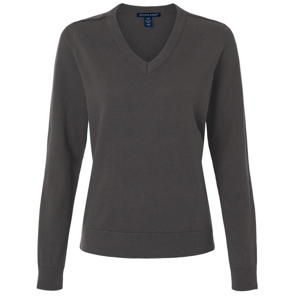 Devon & Jones Women's Graphite New Classics V-Neck Sweater