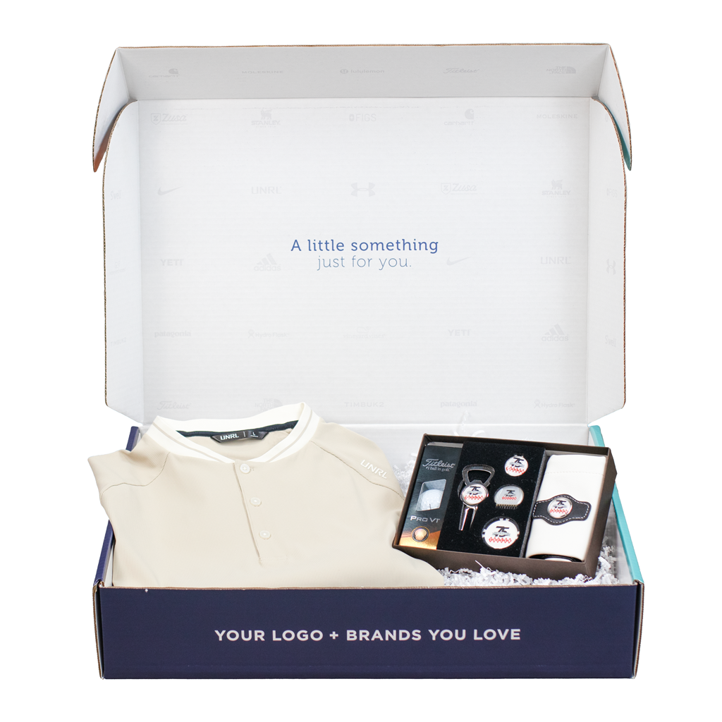 We offer a wide variety of custom gift bundles to suit your gifting occasion! Shop our full collection of UNRL Golf Bundles for your upcoming golf events, or check out our selection of MerchBoxes with a range of themes and custom options to shop!