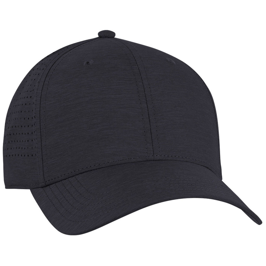 Create a corporate logo for the Ahead Navy Heather Brezo Performance Cap made of heathered perforated fabric with a silicone hook and loop closure. This trendy cap is structured with a mid-fit and pre-curved visor to keep you cool and protected whether you are chilling in the stands, playing your favorite sport, or just relaxing while running errands.The minimum order for this product is 25 pieces.