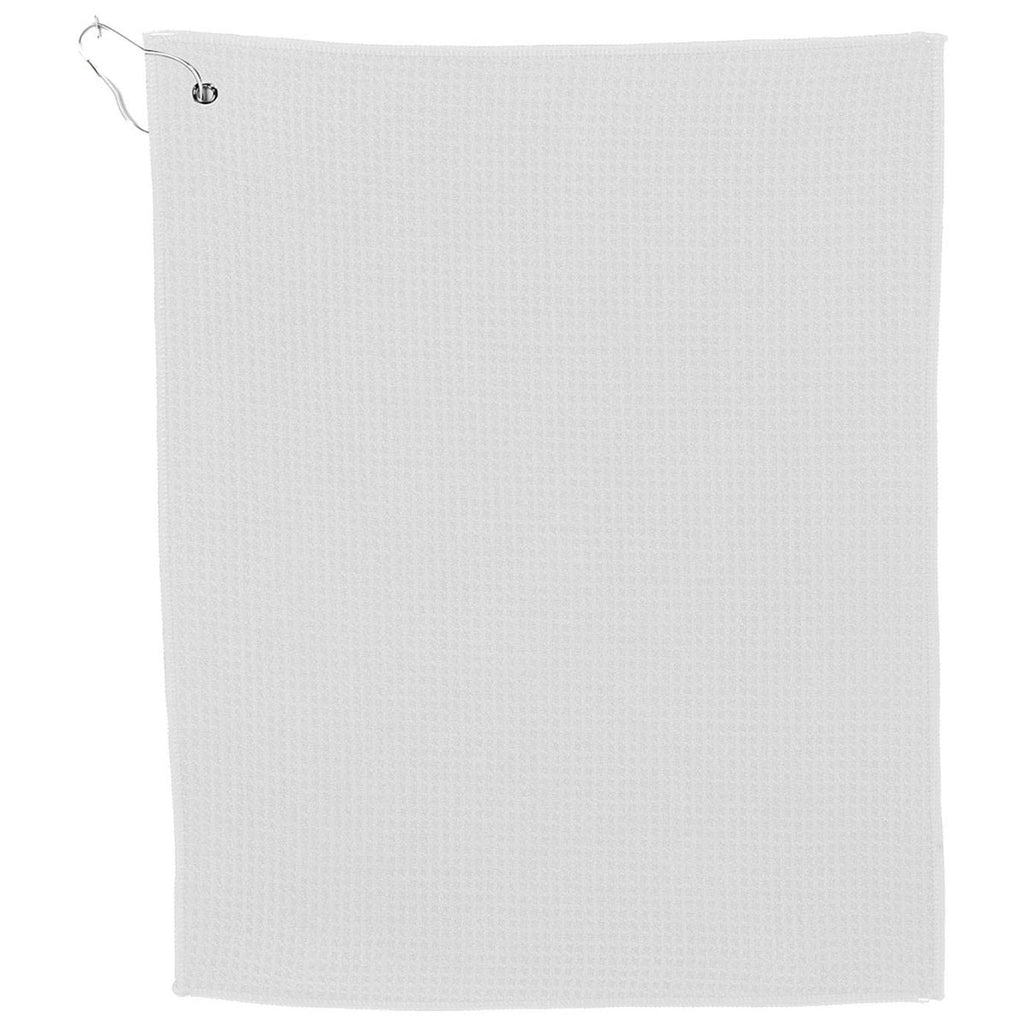 Add your corporate design to the Leed's White 15" x 18" RPET 200g Microfiber Waffle Towel to sell at your pro shop or gift to the golfers in your life. The convenient waffle towel is sized for on-course cleaning and drying, while the metal grommet and hook can easily be attached to your golf bag for fast access.