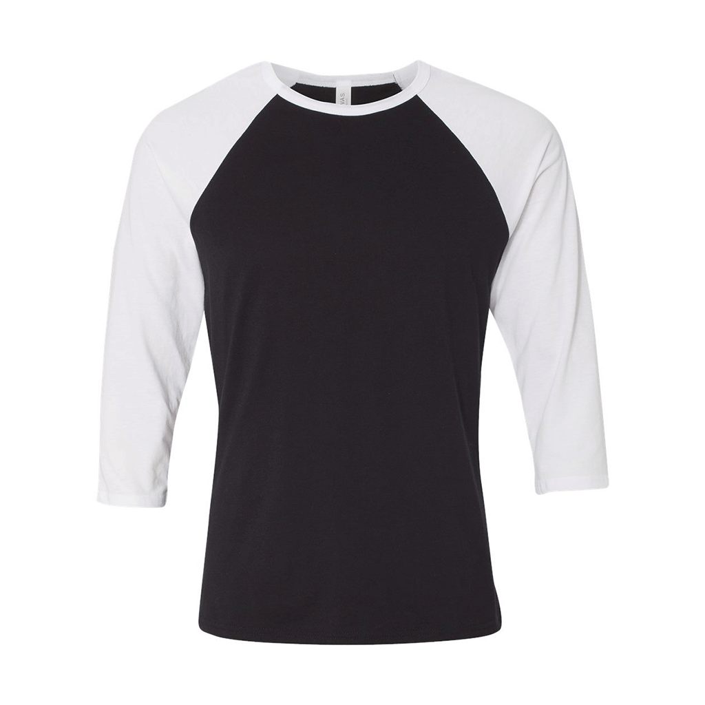 Bella + Canvas Unisex Black/White 3/4 Sleeve Baseball T-Shirt