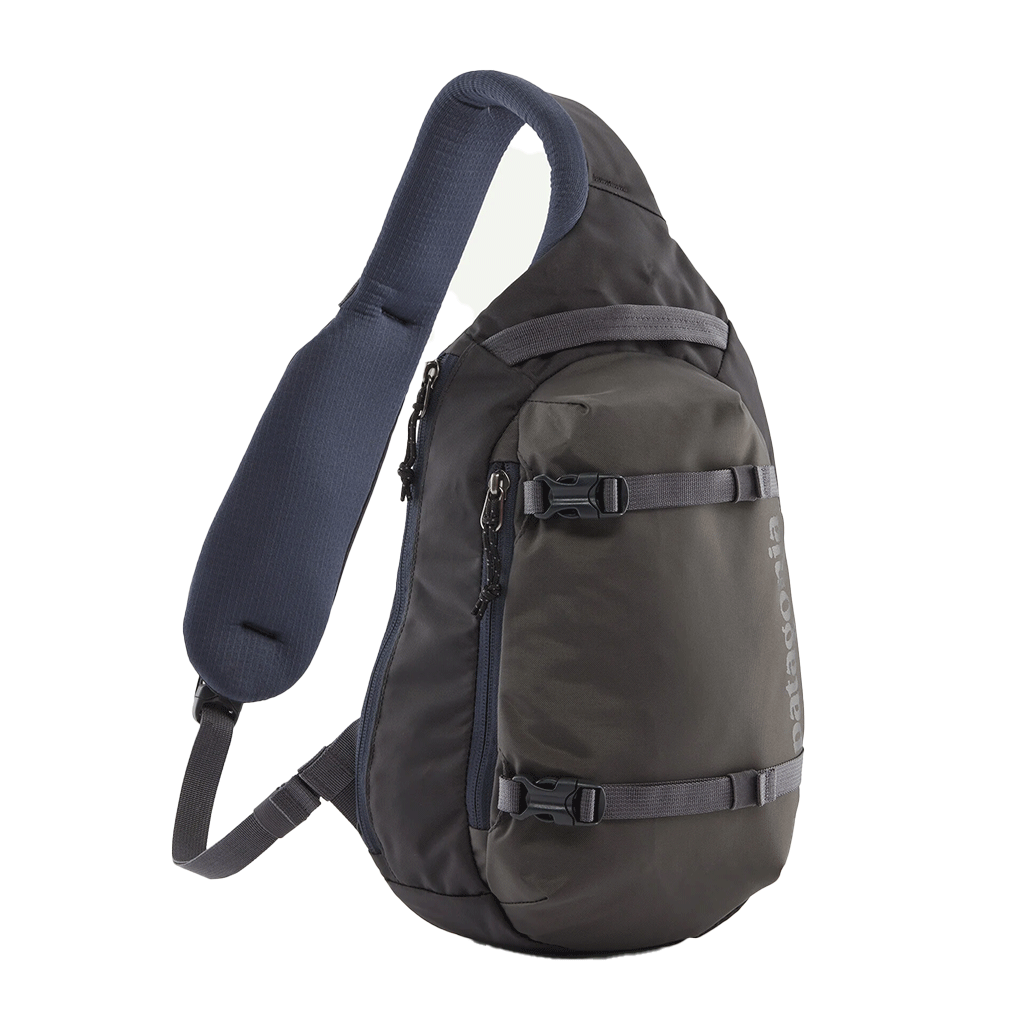 Choose custom embroidery for the Patagonia Smolder Blue Atom Sling 8L made of recycled materials and perfect for work or class. The asymmetrical harness keeps your items close to the body with a larger front pocket for your phone or necessary items. Ideal for a yoga class with tuck-away straps for your mat, work, or school carry.