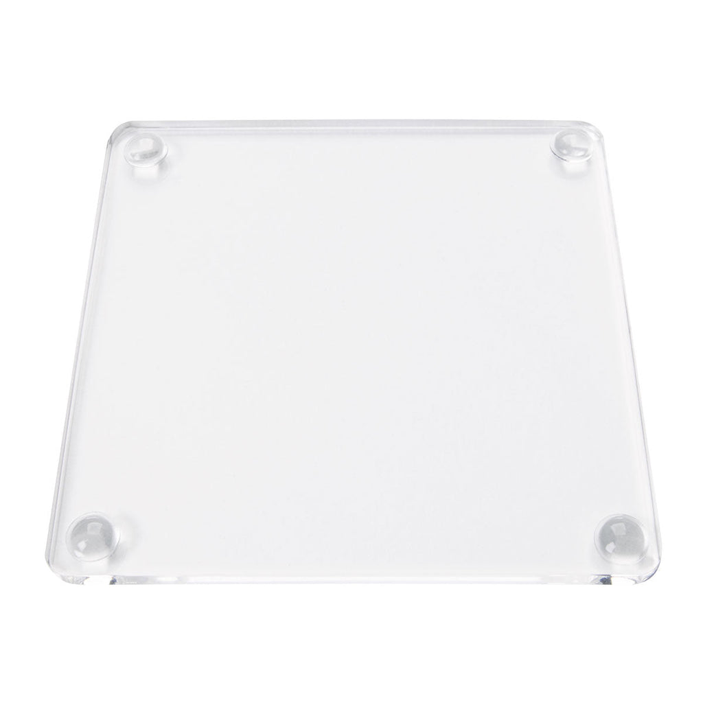 • This colorful acrylic coaster looks like glass. It comes with adhesive silicone feet to prevent it from scratching up your furniture.