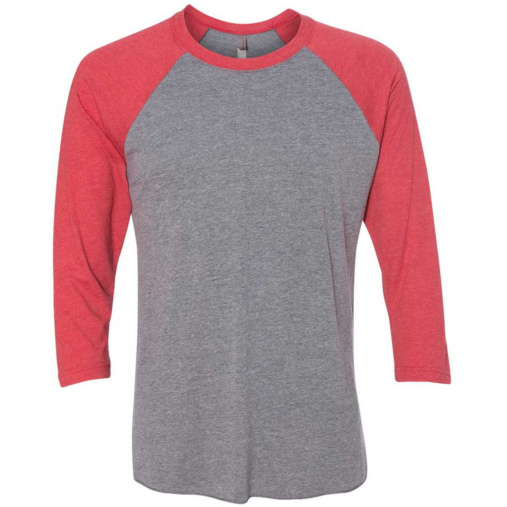 Next Level Unisex Vintage Red/Premium Heather Triblend 3/4-Sleeve Raglan Tee