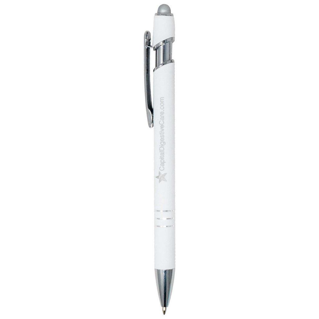 Hub Pens Silver Textari Comfort Cloud Stylus Pen with a corporate design will leave you on cloud nine. This rubberized pure white metal barrel with colorful stylus tips combines writing comfort and stylus functionality. Ideal for those who are always on the go, this pen can be shared with recruits, traveling agents, and work-from-home employees. Order today.The minimum order for this product is 100 pieces.