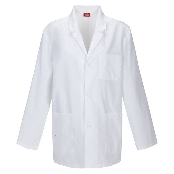Crafted from durable and breathable cotton-polyester blend, Dickies Men's White Consultation Lab Coat is imbued with professionalism and sophistication. It is designed with a notched collar and three-button effortless closure. Chest pocket, discreet inner pocket, two patch pockets, and a back kick pleat enliven this consultation coat. Available in three variants: basic; protected with Certainty antimicrobial technology; protected with Certainty Plus boasting antimicrobial + NANOTEX spills resistance technology. Make this scrub uniform distinctively yours by adding an embroidered logo or font with our quick and affordable customization service. Ideal for hospitals, healthcare centers, dental offices, medical response teams.