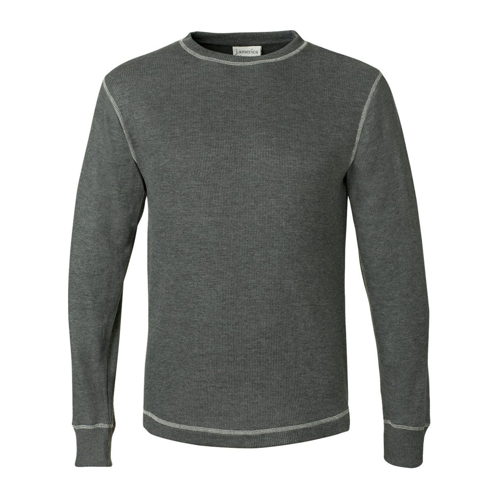 One-hundred percent cotton fabric designed for the company logoed J. America Men's Charcoal Heather/Vintage White Vintage Long Sleeve Thermal T-Shirt feels super soft on the skin. The cotton fabric resists rips and tears to give you years of fashionable high performance use. Contrast color flat lock stitching enhances the appearance of the J. America corporate apparel. The contoured bottom hem presents a refined look that helps you settle into weeklong business seminars. Attach a custom logo on the t-shirt to turn the potential customers you meet into lifelong patrons of your business. Wear the versatile long sleeve t-shirt to work and keep it on afterwards when you dine at your favorite restaurant.Highlights