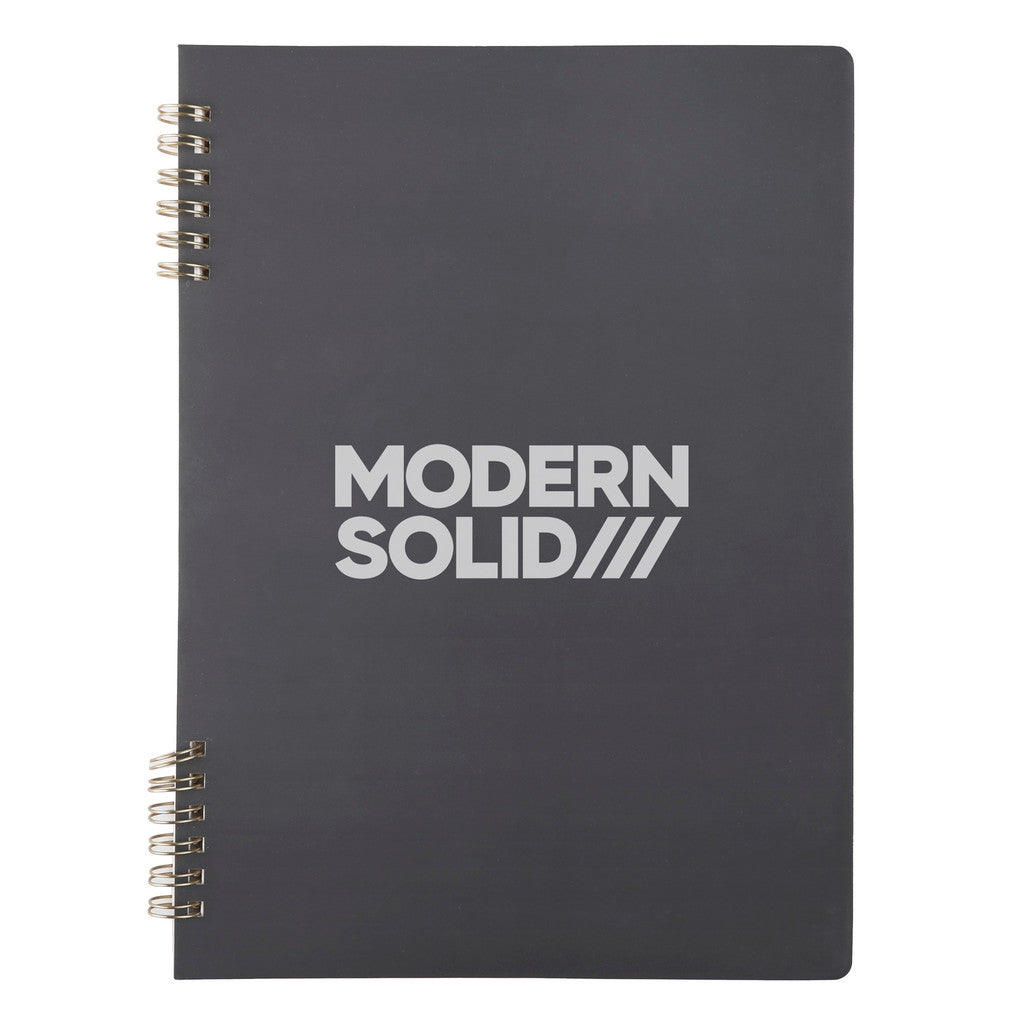 Add your corporate logo to the Handstands Grey Quarry Stone Paper Ring Bound Notebook to showcase your company and make notetaking a breeze. This unique sustainable notebook is ideal for writing or sketching. Made from waterproof calcium carbonite, this spiral-bound notebook is a must-have for those who work in all conditions while on the road. Order today.