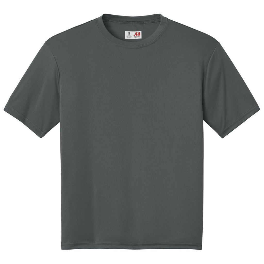 Keep cool with the A4 Men's Graphite Cooling Performance Short Sleeve Tee. Built with moisture-wicking fabric, this tee is designed for workouts, sports, or active jobs. Customize it with your logo to create branded apparel that's functional and comfortable. Its lightweight design makes it a reliable choice for corporate promotions or team uniforms.Corresponding Women's Style: A4 Women's Graphite Cooling Performance Short Sleeve Tee