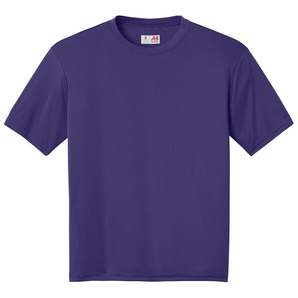 Keep cool with the A4 Men's Purple Cooling Performance Short Sleeve Tee. Built with moisture-wicking fabric, this tee is designed for workouts, sports, or active jobs. Customize it with your logo to create branded apparel that's functional and comfortable. Its lightweight design makes it a reliable choice for corporate promotions or team uniforms.Corresponding Women's Style: A4 Women's Purple Cooling Performance Short Sleeve Tee