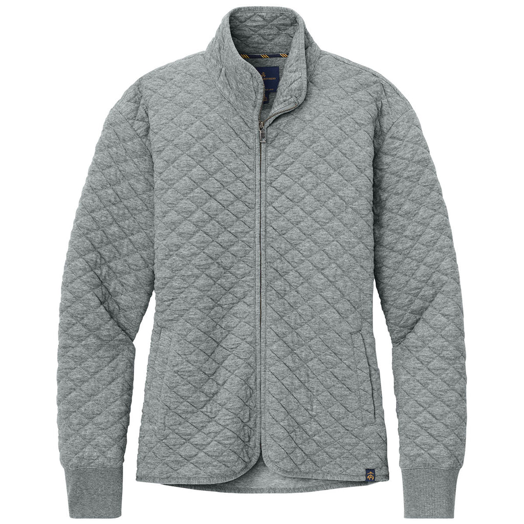 Brooks Brothers Women's Light Shadow Grey Heather Diamond Quilt Full-Zip