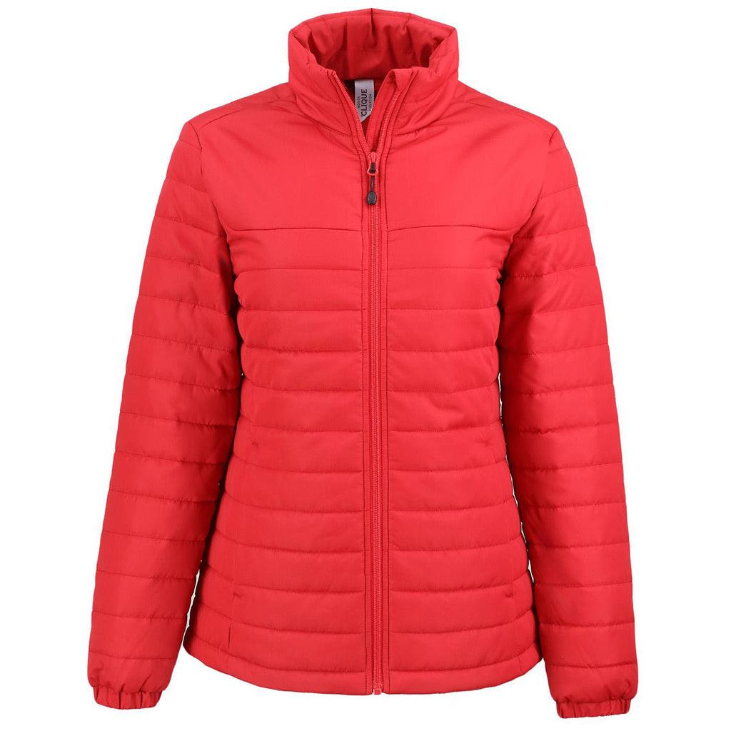 The Clique Women's Red Elevation Eco Full Zip Puffer Jacket brings eco-friendly comfort to custom winter apparel. Made with recycled materials and lightweight insulation, it's excellent for branded giveaways or resale at sustainable shops. A flattering fit and packable design make it a practical layer for cold-weather activities or travel.Corresponding Men's Style: Clique Men's Red Elevation Eco Full Zip Puffer Jacket