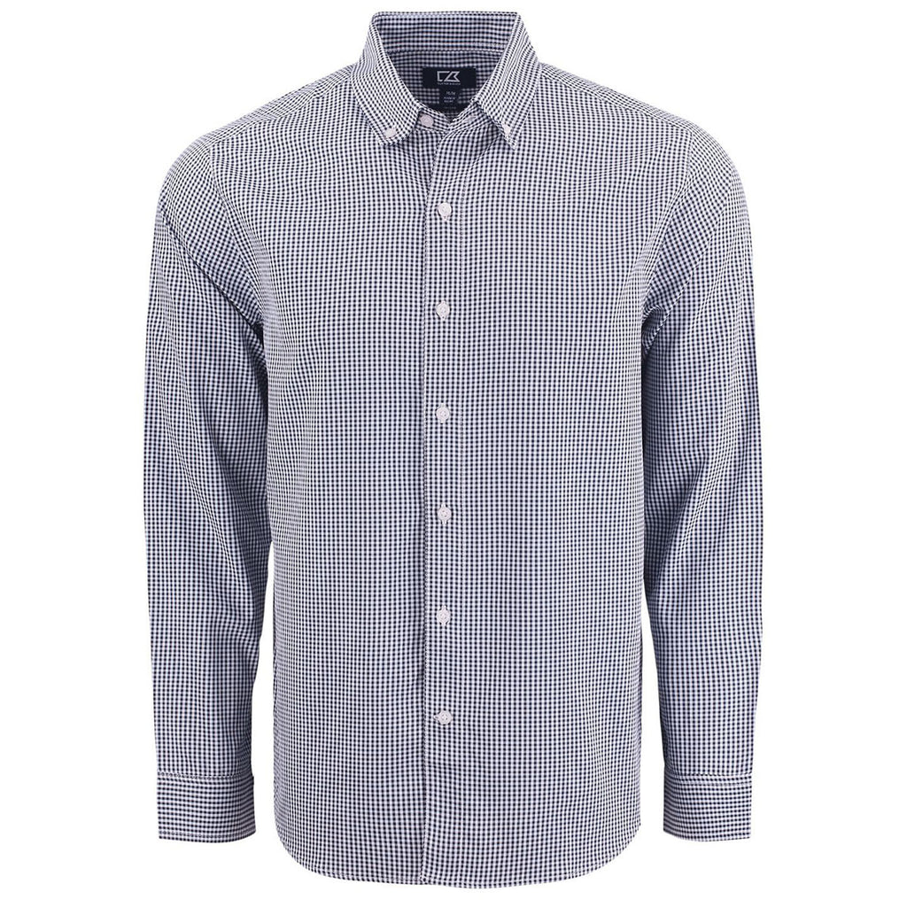 Cutter & Buck Men's Navy Blue/White Skyline Epic Confidence Recycled Gingham Long Sleeve Dress Shirt