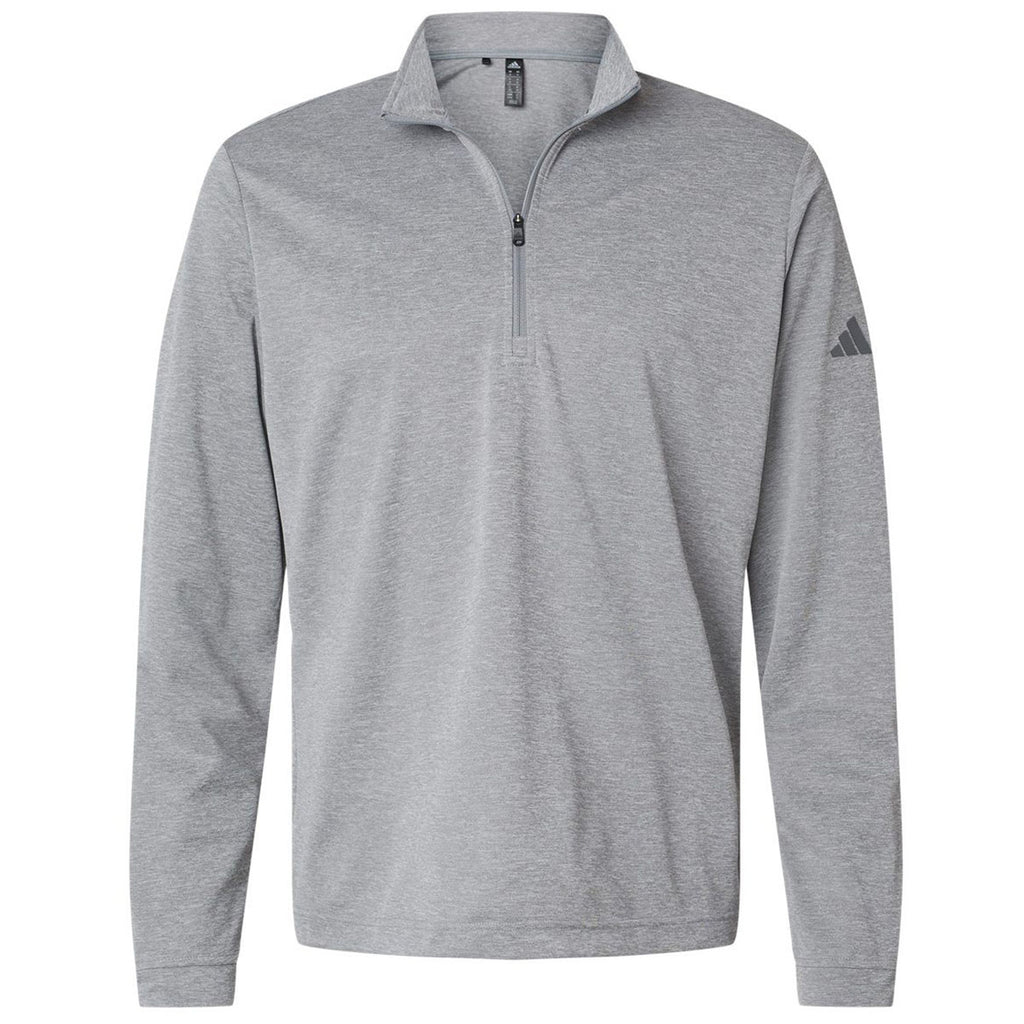 Adidas Men's Grey Three Melange Lightweight Quarter-Zip Pullover with a corporate logo creates the ideal way to promote your health and fitness line with ease and style. The hydrophilic finish offers UPF 50+ protection with a self-mock collar, cuffs, and a bottom hem. Give as a gift or sale in your specialty shop or gym to promote your brand.This product cannot ship outside of the United States