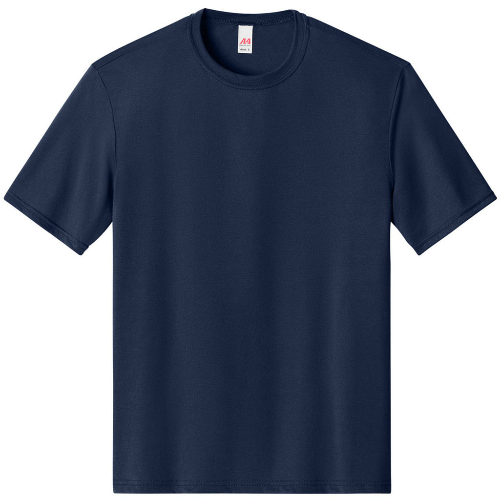 Soft to the touch and designed for comfort, the A4 Men's Navy Softek Short Sleeve Tee balances casual wear with performance features. Lightweight and breathable, it's an excellent option for customization. Whether outfitting a team or creating branded merchandise, this tee highlights comfort and function in one versatile package.Highlights
