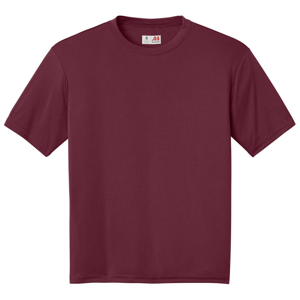 Keep cool with the A4 Men's Cardinal Cooling Performance Short Sleeve Tee. Built with moisture-wicking fabric, this tee is designed for workouts, sports, or active jobs. Customize it with your logo to create branded apparel that's functional and comfortable. Its lightweight design makes it a reliable choice for corporate promotions or team uniforms.Highlights