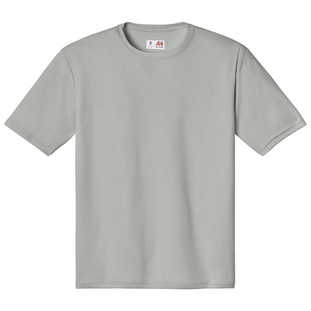 Keep cool with the A4 Men's Silver Cooling Performance Short Sleeve Tee. Built with moisture-wicking fabric, this tee is designed for workouts, sports, or active jobs. Customize it with your logo to create branded apparel that's functional and comfortable. Its lightweight design makes it a reliable choice for corporate promotions or team uniforms.Corresponding Women's Style: A4 Women's Silver Cooling Performance Short Sleeve Tee