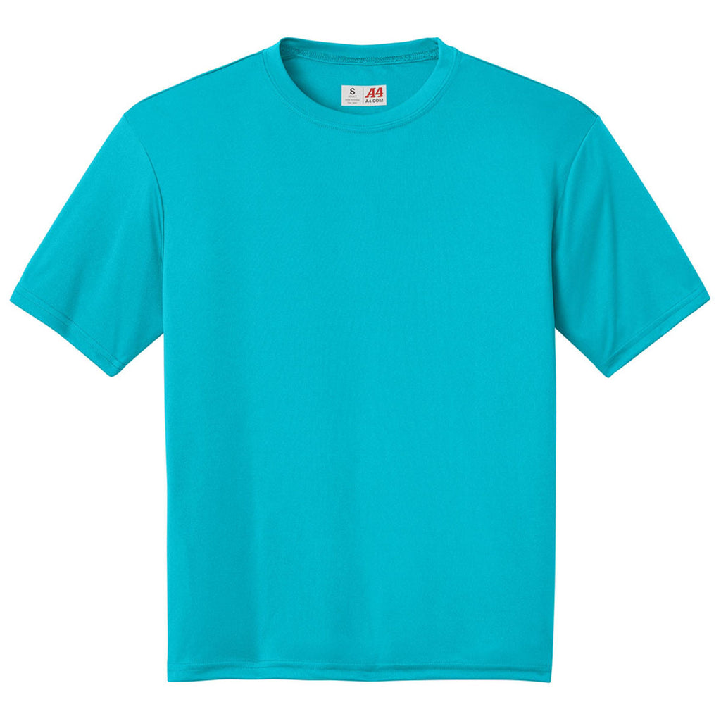 Keep cool with the A4 Men's Electric Blue Cooling Performance Short Sleeve Tee. Built with moisture-wicking fabric, this tee is designed for workouts, sports, or active jobs. Customize it with your logo to create branded apparel that's functional and comfortable. Its lightweight design makes it a reliable choice for corporate promotions or team uniforms.Highlights