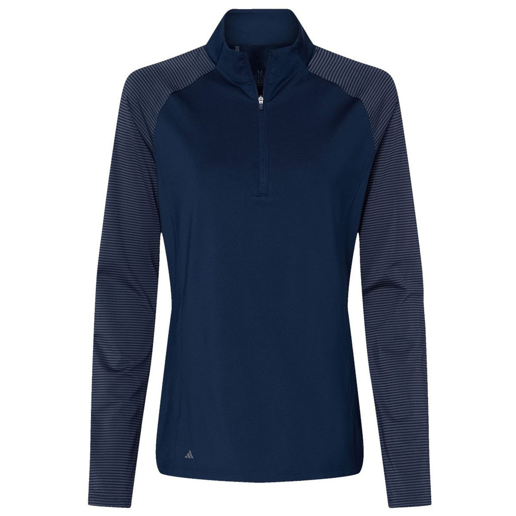 Adidas Women's Team Navy Blue Stripe Block Quarter-Zip Pullover