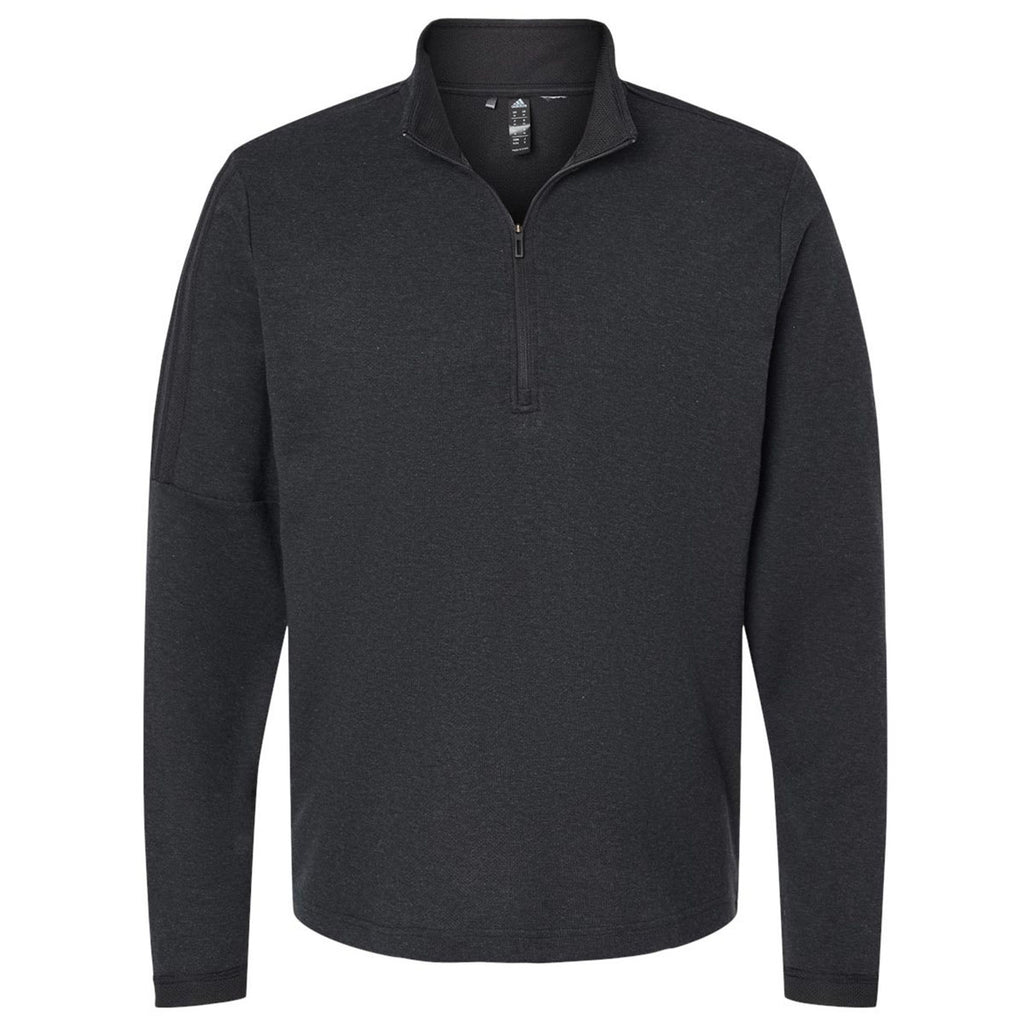 Create a look with a custom Adidas Men's Black Melange 3-Stripes Quarter-Zip Sweater. This upscale sweater offers moisture-management properties and a stand-up collar for that classic look that can truly be appreciated by all. This sweater is perfect for the golf course and the clubhouse after for a drink and snack with friends.This product cannot ship outside of the United States