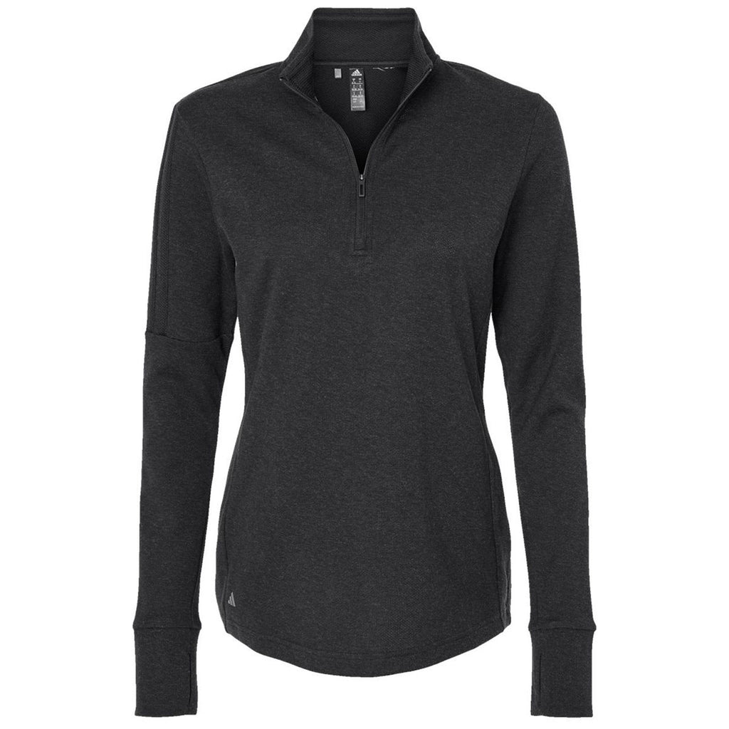 adidas Women's Acid Black Melange Melange 3-Stripes Quarter Zip Pullover