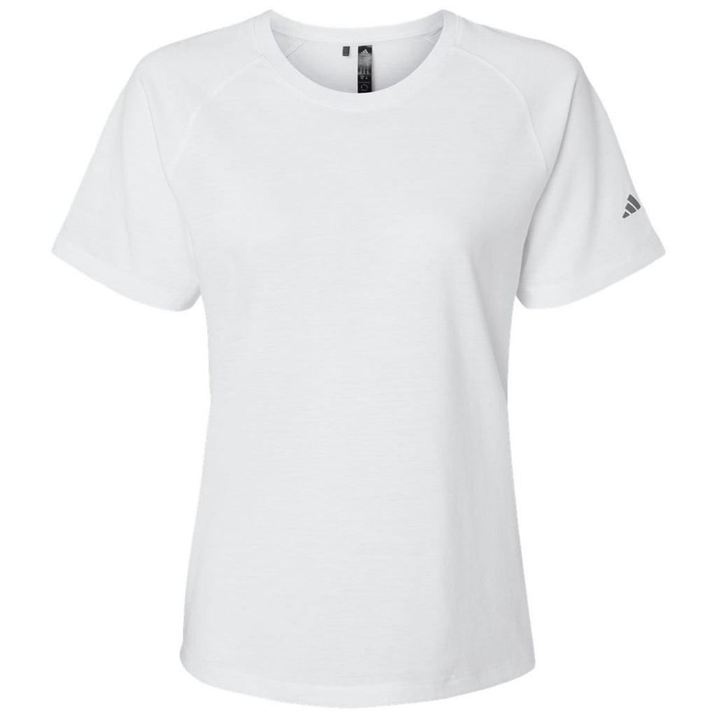 The Adidas Women's White Blended T-Shirt with a custom logo is a must-have for those who like to relax and have a little fun. The regular-fitting tee is highly versatile and looks great during almost any activity. Made of recycled polyester and cotton, the sustainable tee can serve as brand awareness, team gear, or daily wear with ease.