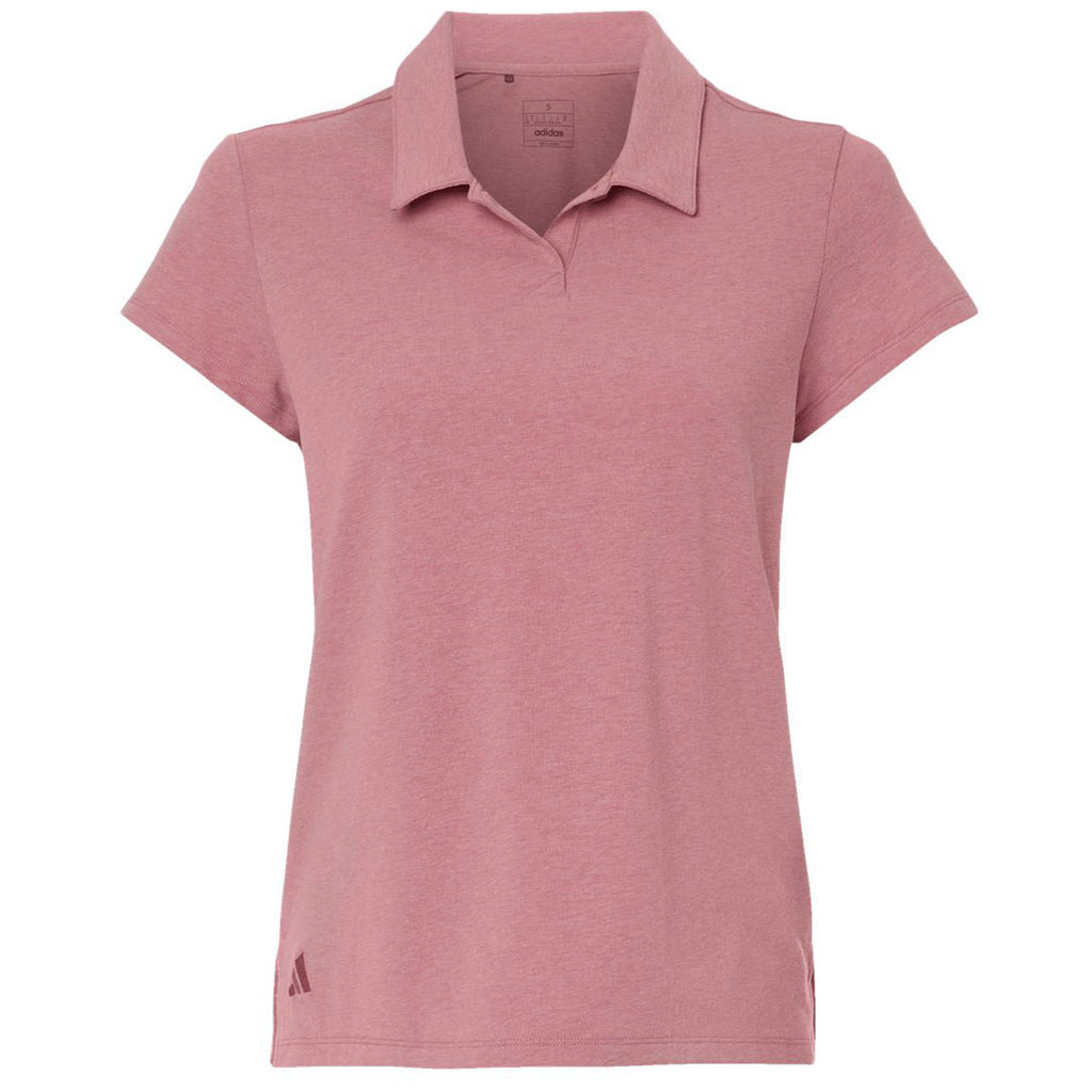 Try out a corporate logo on the Adidas Women's Pink Strata Melange Blend Polo to create a special option for trade shows, recruiting events, and charity events. The hi-low hem adds flair and side vents create a comfortable ventilation system while wearing. Perfect for golf, tennis, work, and everything in between.This product cannot ship outside of the United States
