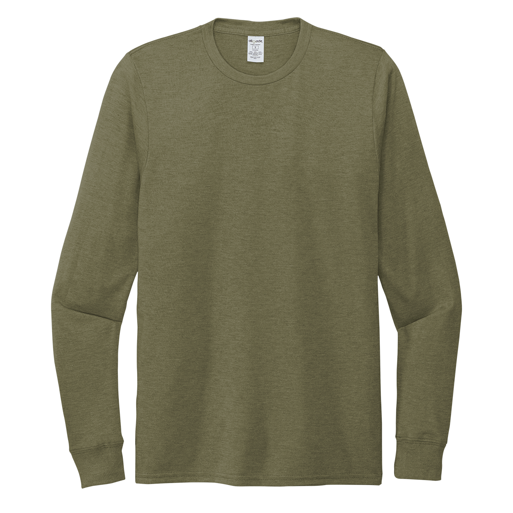 Screen print will pop on the Allmade Unisex Olive You Green Tri-Blend Long Sleeve Tee. This is a tee for all occasions with long sleeve design and made of recycled materials to create sustainable clothing. Made from the equivalent of up to 6 plastic water bottles, this recycled apparel is a must have for the eco-friendly individual. Add a custom logo to create employee apparel or an entire logoed apparel line. Perfect for layering when the weather is a bit chilly or wearing alone whether you are running errands or heading to the gym, this rib neck tee is a must have.