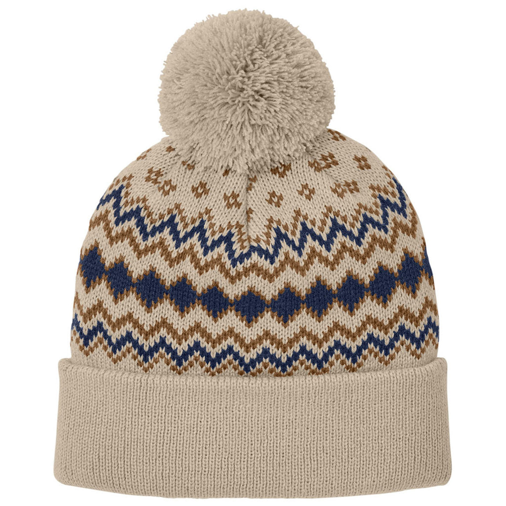 Port Authority Sahara/True Navy/Duck Brown Alpine Pom Beanie