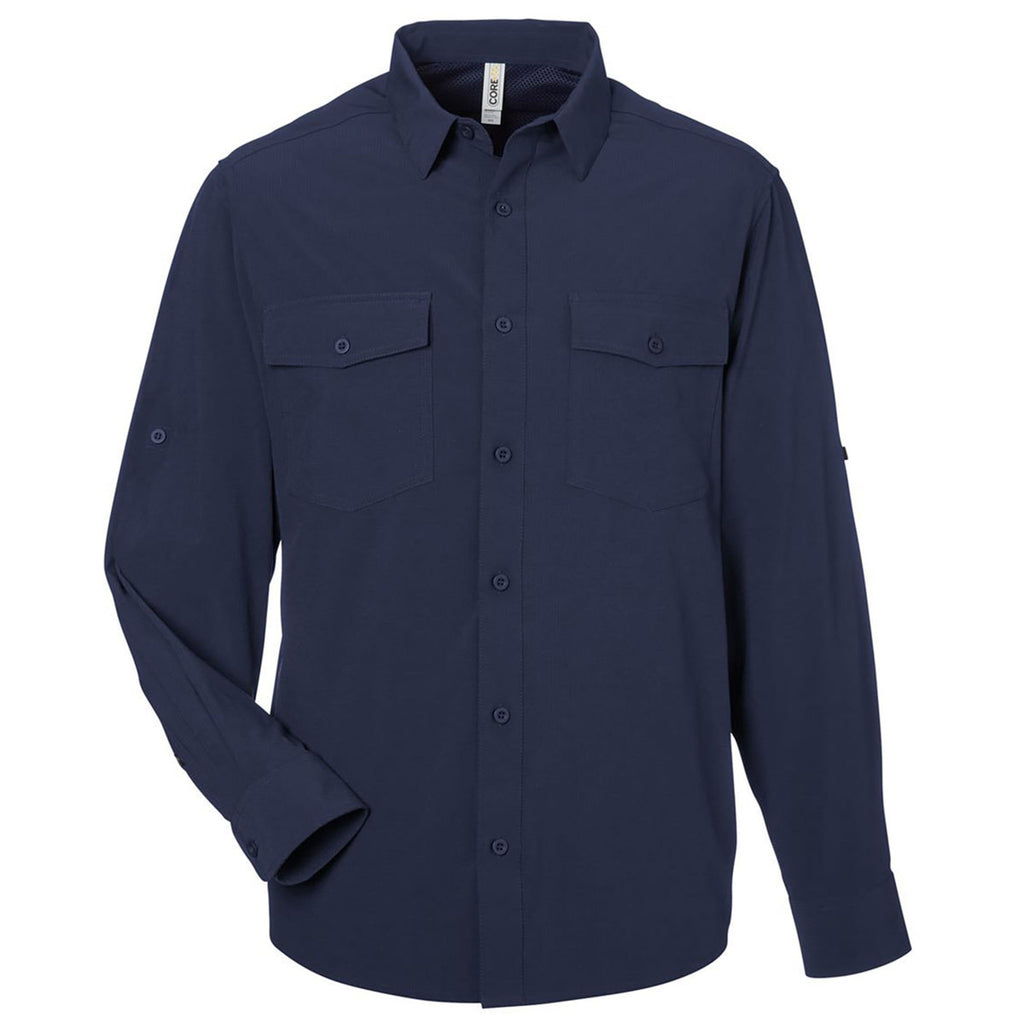Perfect for outdoor crews or coastal branding, the Core 365 Men's Classic Navy Ultra UVP Marina Shirt provides UPF 50+ protection and lightweight coverage. This custom-ready shirt includes mesh ventilation and moisture-wicking tech, making it ideal for sunny workdays or branded travel gear. Professional, breathable, and made for movement.Corresponding Women's Style: Core 365 Women's Classic Navy Ultra UVP Long Sleeve Marina Shirt